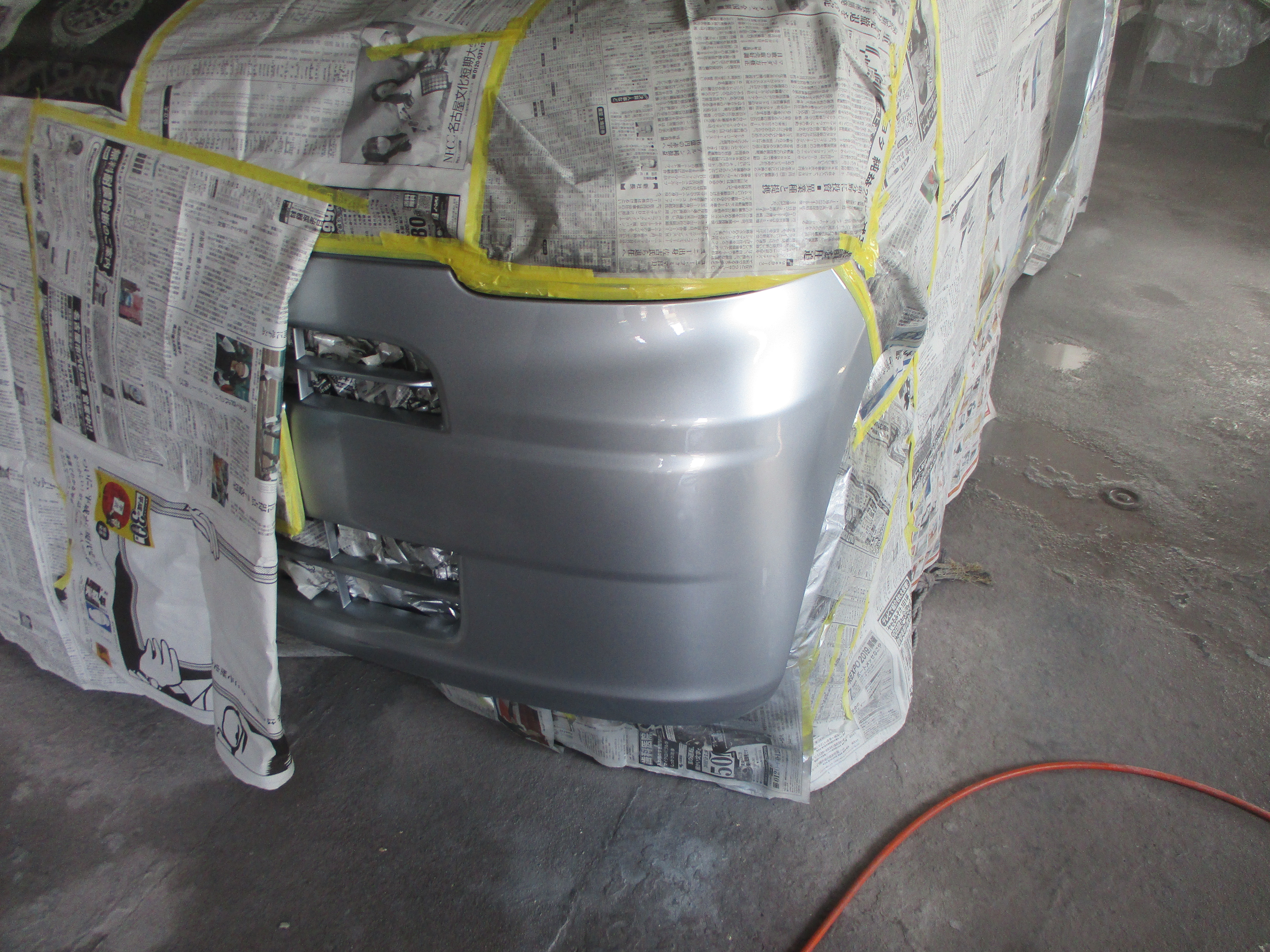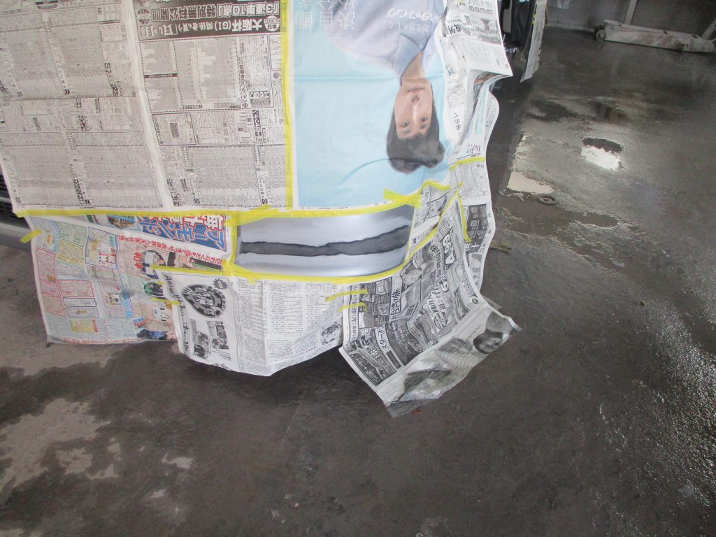 他の場所に塗装のミストが掛からなくするため、マスキングで周りをしっかりガードして塗装していきます。
