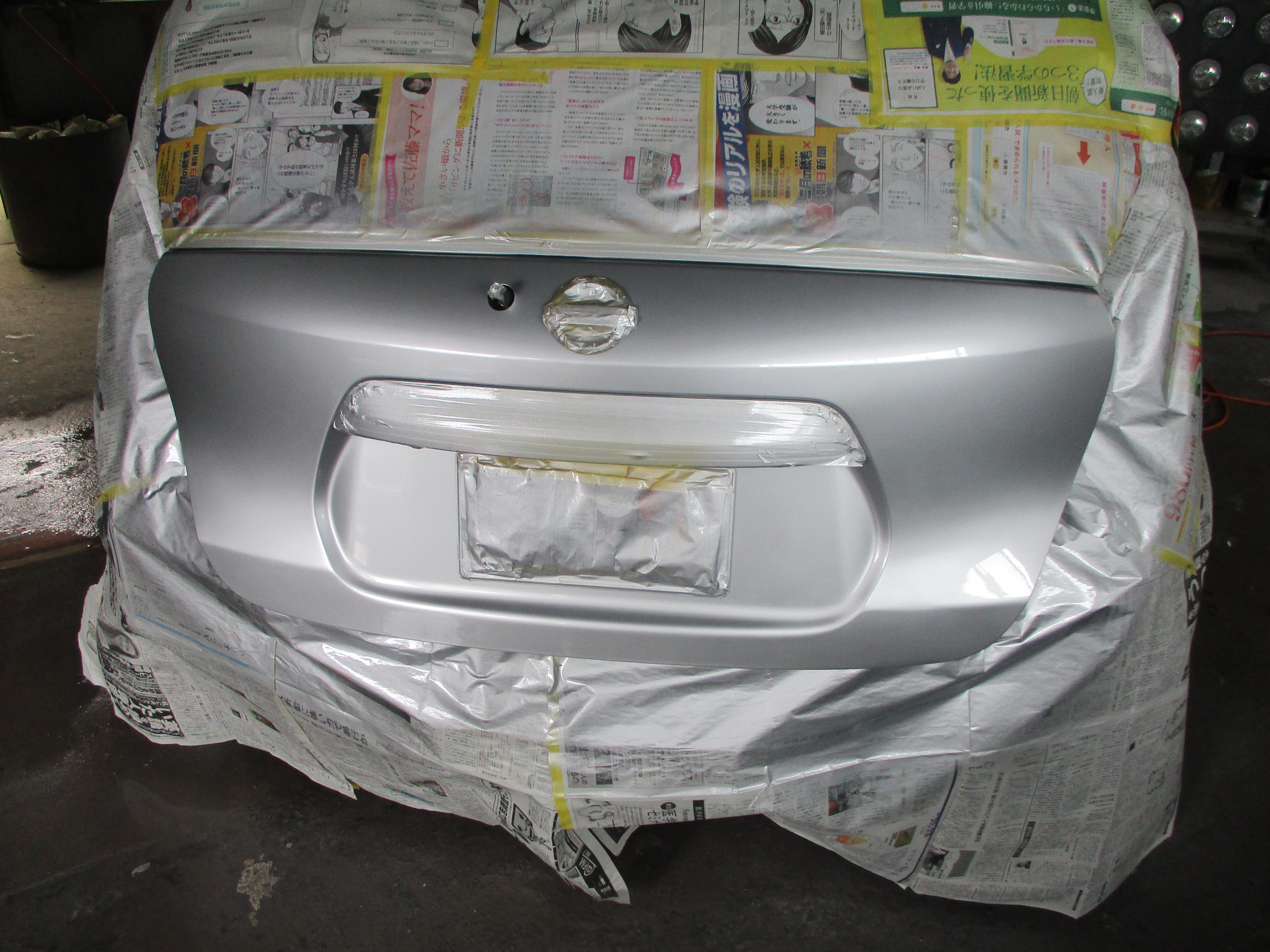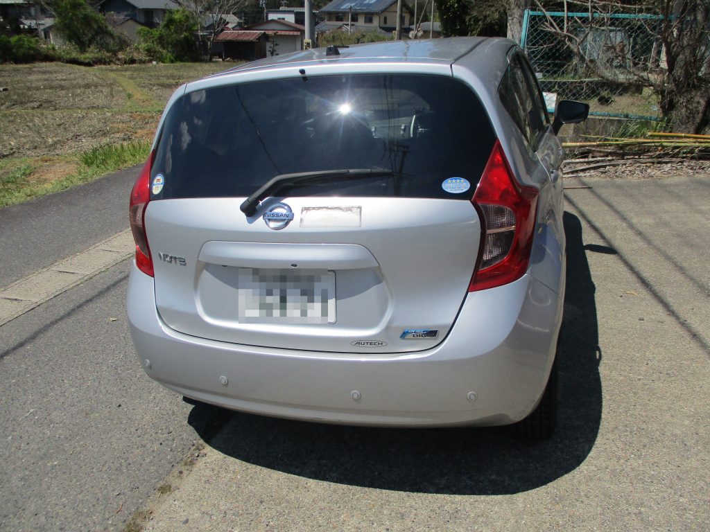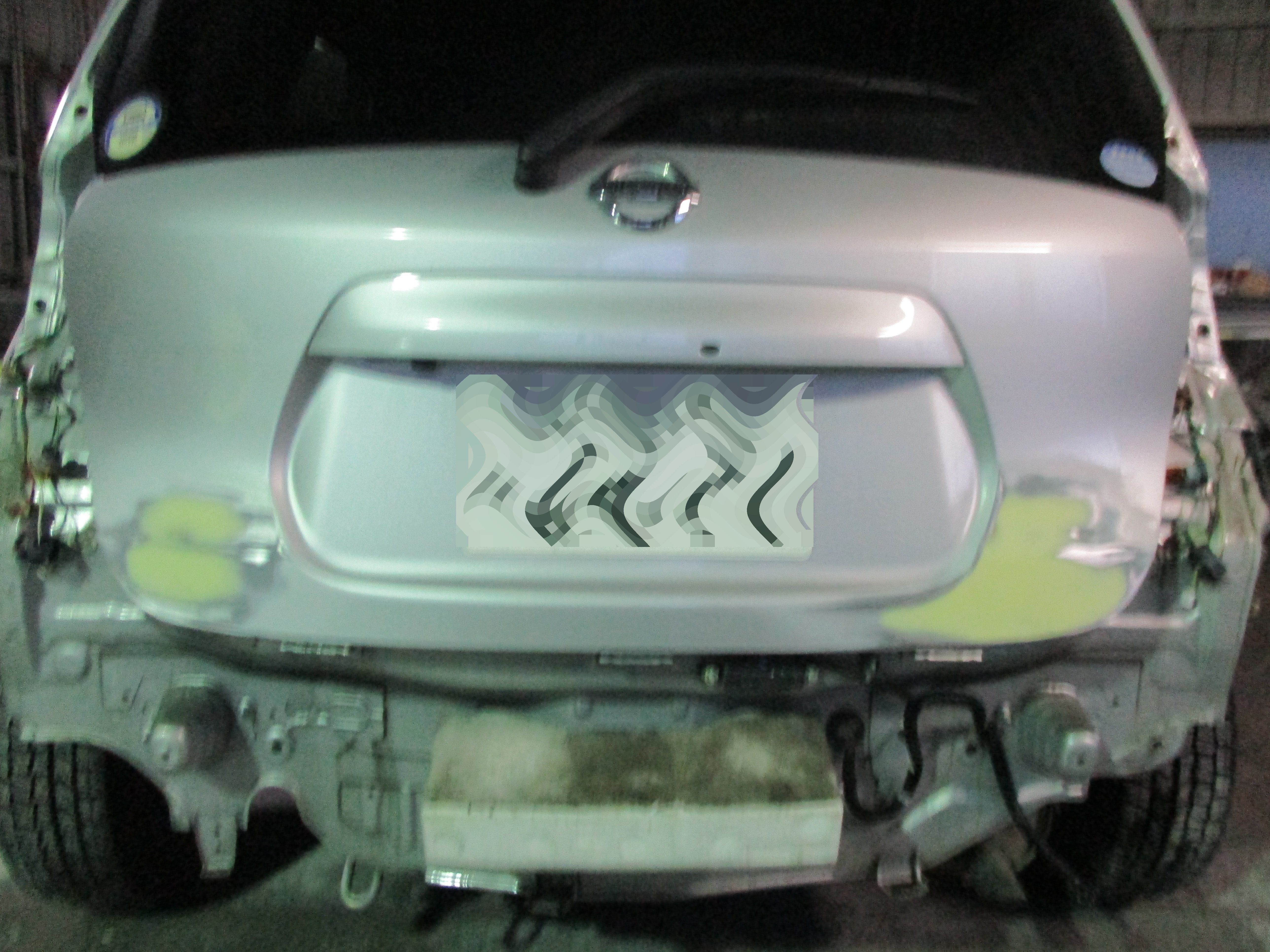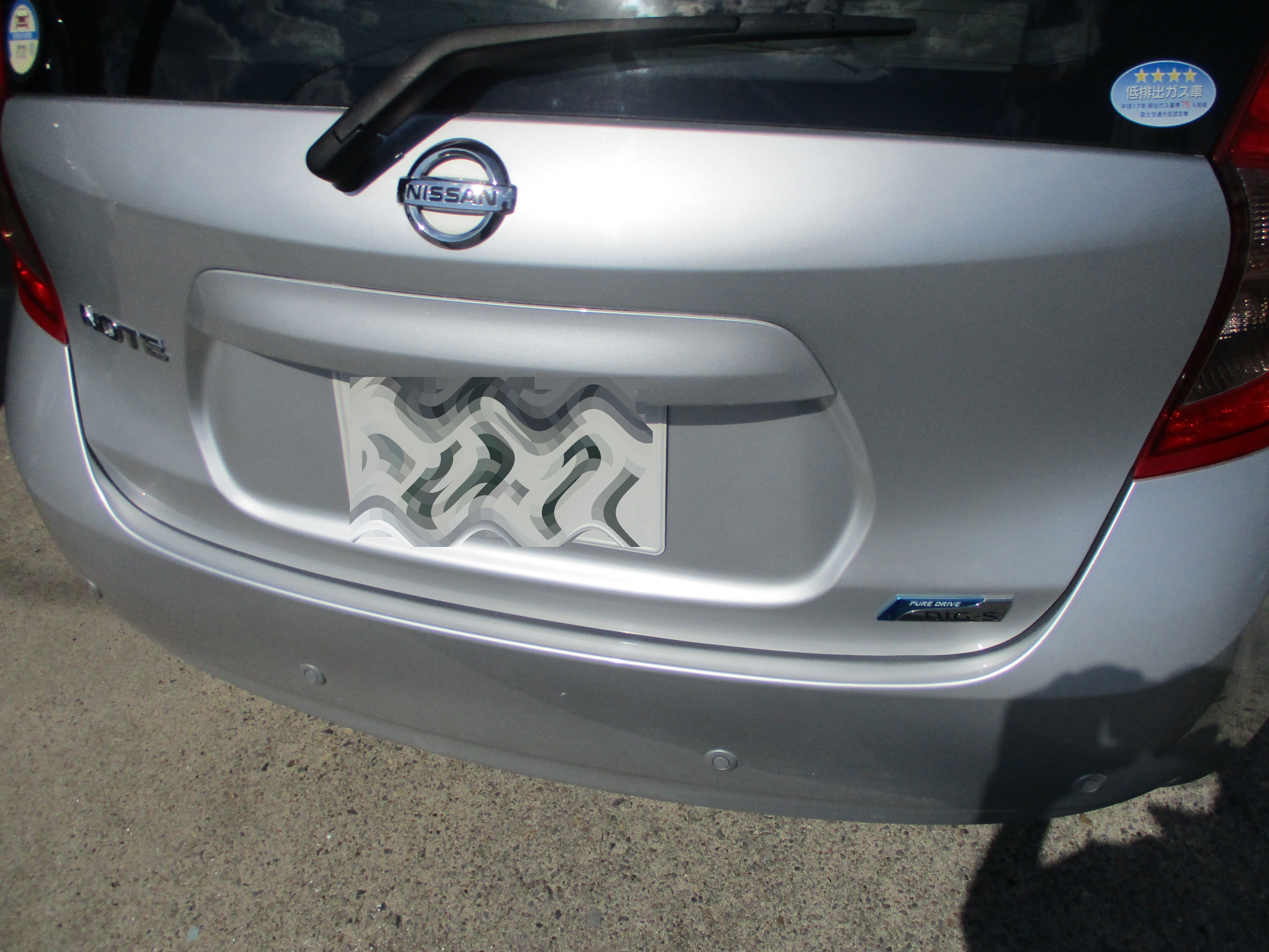 瀬戸市のお客様から日産・ノートのバックドアとリアバンパーのヘコミ修理の板金・塗装の依頼をいただきました。