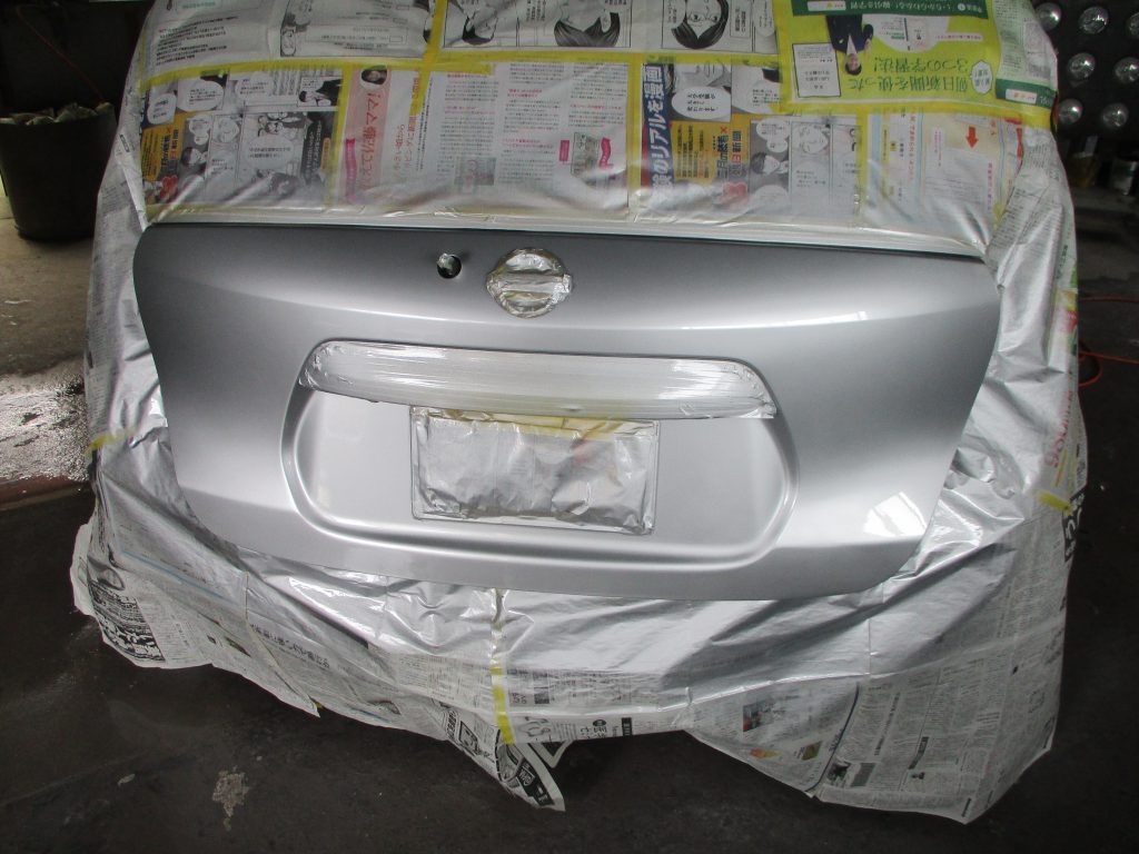 塗装が乾いたらリアバンパーを取り付けて固定したら、塗装中で乗りましたブツ、ホコリを細かい2000番のペーパーで削り取り、残ったペーパー目をコンパウンドでしっかりとまんべんなく磨いていき、輝くような肌に仕上げていきこれで施工完了です。