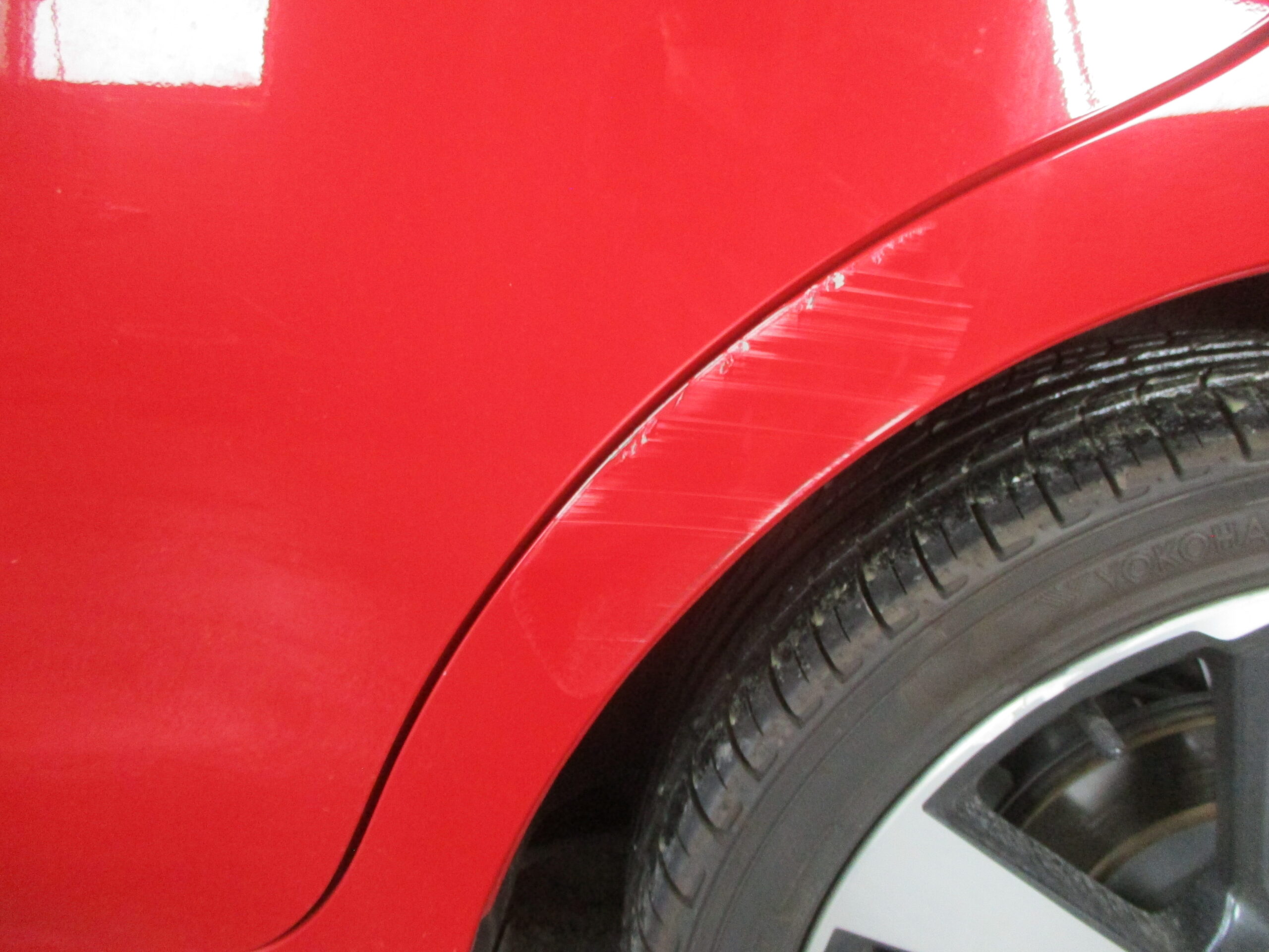 左リアクォータのキズ・ヘコミによる板金・塗装の修理になります。
