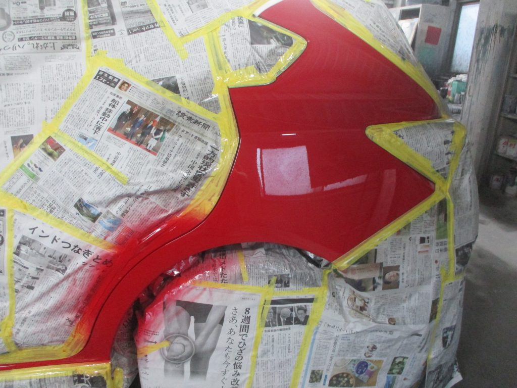 キレイに塗装が終わった後は、そのまま20分ヒーターで炙って乾燥したら一度冷まします。そして塗装で乗ったホコリやブツを2000番ペーパーで研いでポリッシャーでしっかり磨き上げたら修理完了となります。かなりピカピカになりました(^^)/