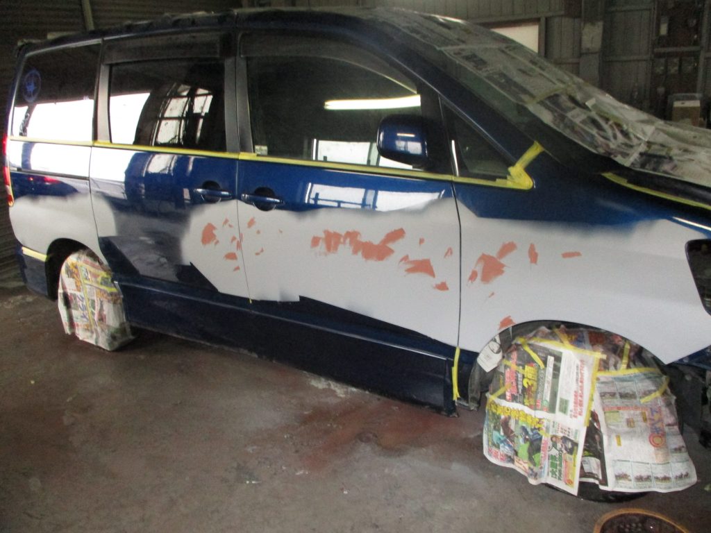 犬山市のお客様からトヨタ・ノアの右側面の板金・塗装の依頼をいただきました。