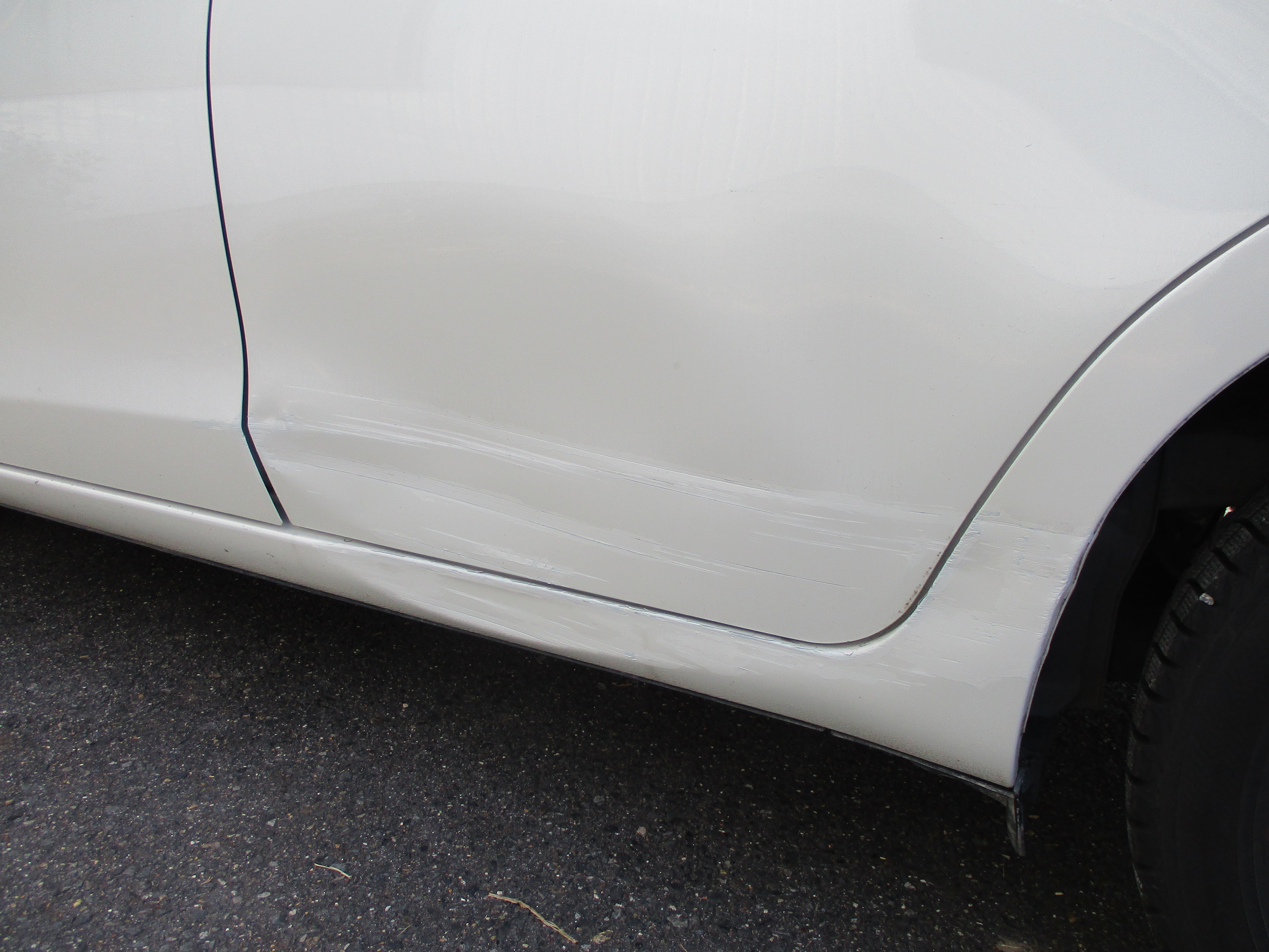 キズ・ヘコミを改めて確認すると、左フロントドアから左リアドアそして左ステップパネル